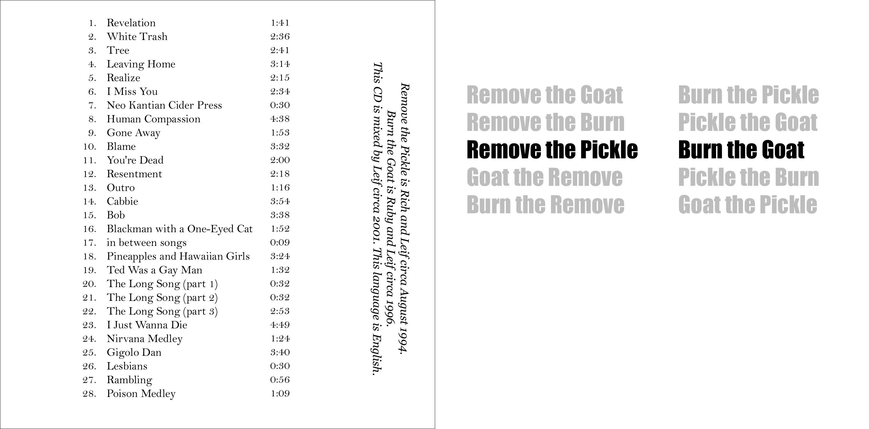 Remove the Pickle / Burn the Goat |