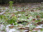 It snowed yesterday and last Friday. Well, it was icy sleet balls. The exotic tropicals and citrus took a beating, but the natives did just fine. This picture shows the Chicken Yard and the layer of ice that's still out there. I read that planting as I did in the fall would let the plants grow roots throughout the winter, but I didn't expect them to grow much above ground. I'm seeing new growth even though it's been pretty cold. One yellow flower even grew a month or so ago.
