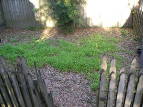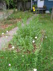 The rain garden has filled out nicely, but I'm noticing a particular lack of something: grasses. I suppose one of my initial-phase goals was to just get some diverse species established, which is why I haven't trimmed any plants from growing between the stepping stones. (They're blocking the last few on the way to the back bench.) Now that they're established and apparently doing well — the tallest plants are 4' tall — I'm waiting for the flowers and resulting seeds. At that time, I think I'll start discouraging some growth.