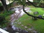 Another storm, more proof that it's a rain garden I built. I've started listing plants that would do well in all that water but still be ok when it's dry. My list has goldenrod, lyreleaf sage*, inland seaoats, buttonbush*, spiderwort, American beautyberry*, and Turk's cap. Depending on the price and availability, I might buy the ones with asterisks from the Hilltop Arboretum PlantFest on Saturday. Or I may just go with seeds and buy only trees (for my front yard plan).