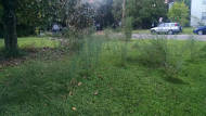 Further up the driveway is this stuff. Best I can figure is it's primarily crap. Exotic grasses and whatnot. I've tried to pick out all the chamber bitter, but I'm sure there's still some in there. The main plant is a bottlebrush from Australia.