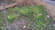 The rain garden has now been in existence for about 1.4 years. Way back in August and September 2013, I carved out a retention area and sowed the seed. The Chicken Yard was sown at the same time but without any land-sculpting. So how do they look now in their second mid-winter? (Or is it late winter?)