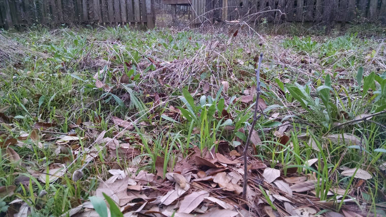 It hasn't leafed out yet while the white mulberry just next to it has. (I'm keeping the exotic white around to study how it compares to the native reds. When I'm satisfied, I'll cut it down for firewood.) The Chicken Yard (under the live oak) is mostly sedge and lanceleaf coreopsis at this point. I'm not sure what I'm going to do here. I suppose I'll wait to see what comes up this year. Long-term, I expect the red mulberry to dominate this space. Short-term, no idea.