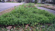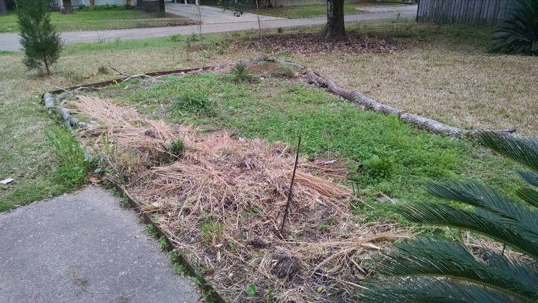Being in the front yard, I can't ignore the large new beds I dug up in August and September. Here are two pictures of what it looks like these days.