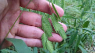 - witch hazel (Hamamelis virginiana) — I accidentally clipped it with a string trimmer this year. It lost a bunch of leaves and has some new shoots beneath the cut.