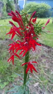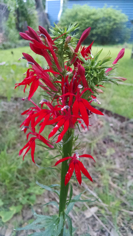 This is a new cardinal flower that just started blooming this week. I doubt it's going to get enough sun where I planted it, but it should at least get enough water, being in the rain garden.