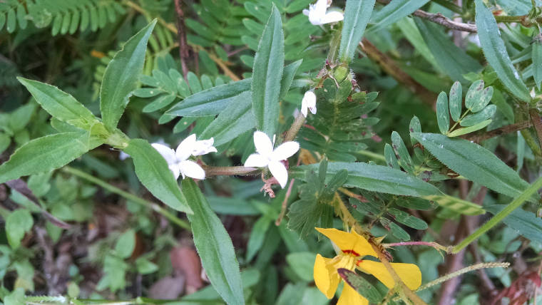 And down low are some Virginia buttonweed, a native plant that the turfgrass purists despise because of its "invasive" nature. But I say if it can hold its own against a plant as devastating and useless as turfgrass, it's a hero.