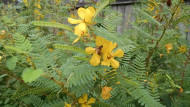 The partridge pea is still going strong. Bees, both European honey and domestic, are all over them. I've also seen some cloudless sulphur butterflies (Phoebis sennae) laying eggs on them. The back alley is a wall of this stuff. There's going to be a lot of seeds to share, as long as everyone's ok with Texas genetics. (They flower earlier, it turns out.)