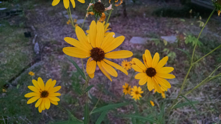 This is the first year I get swamp sunflower gracing the rain garden. Even though the rain garden is bone dry because of minimal rainfall this summer and fall, this plant is balls to the wall.