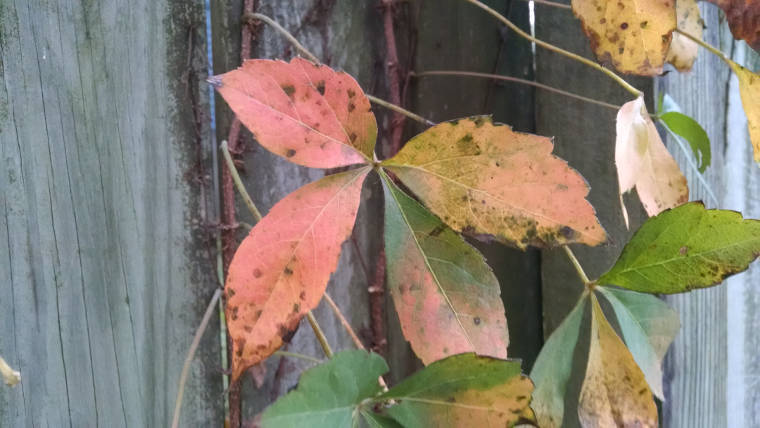 It's not the best year for Virginia creeper leaf color, but it's not so bad.