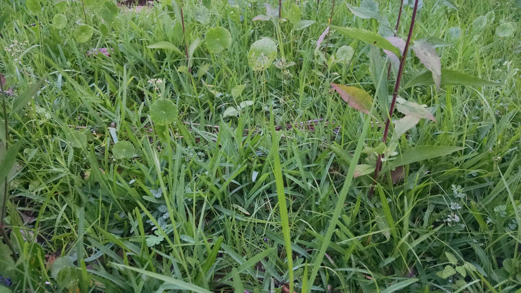 And what I mean by it being an area of stress is that much of the seed has germinated and is now competing against all the existing once-dormant seed and active turf grass. St. Augustine, chamberbitter, and a bunch of other stuff I don't know the names for are taking advantage of the sudden clearing in an attempt to get more light, water, and soil. Because that's what plants do when they are in a good location.