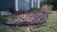 This winter, I extended the front foundation bed and replaced the liriope with recycled-plastic edging. In the center is a possumhaw viburnum. I'm in the process of removing shell ginger just behind it. I've already put in a female yaupon there. The rest will be various grasses, mostly little bluestem.