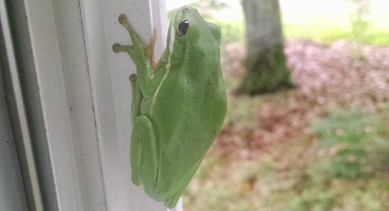 I saw this green frog on the outside of the living room window in April. From the things I've read, amphibians are a great indicator of environmental health.
