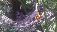 In June, I noticed a mockingbird was always hanging around the front yard, swooping down on the cats the neighbors annoyingly let roam the street. This is classic parent behavior, so I knew there was a nest somewhere. I finally found it in the redcedar, about 4 feet off the ground. This was pretty low, but I want to believe the birds lived even though they were suddenly gone one day.